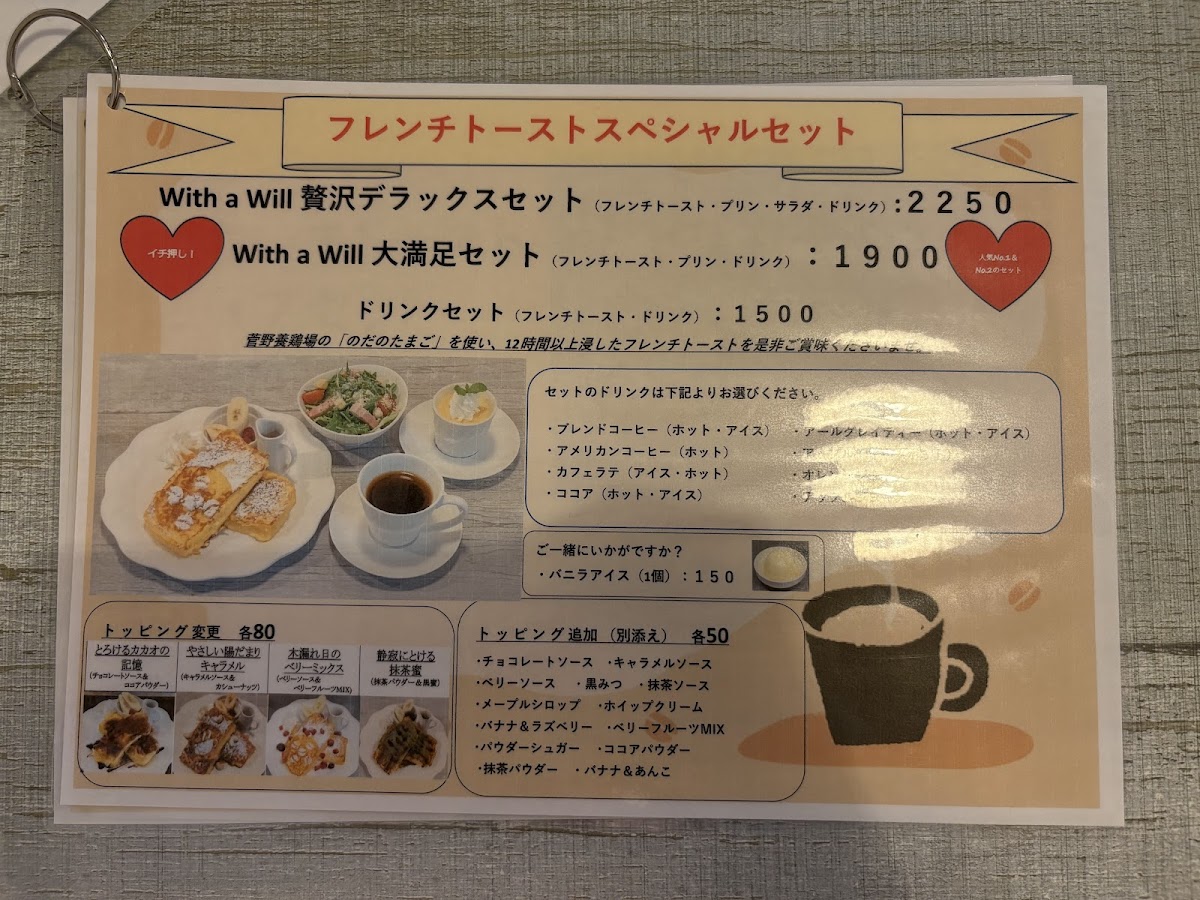 For anyone in the Matsudo area, this café is a must-visit. Whether you're after a hearty lunch or a sweet treat, Cafe×Dining With a Will is ready to serve deliciousness crafted just for you!